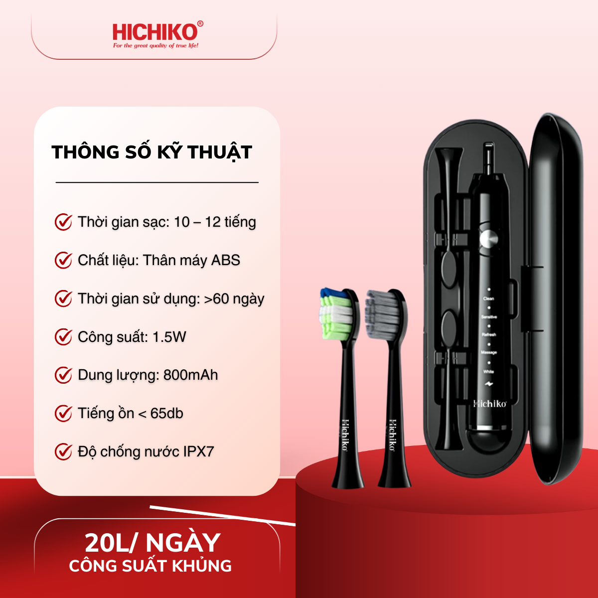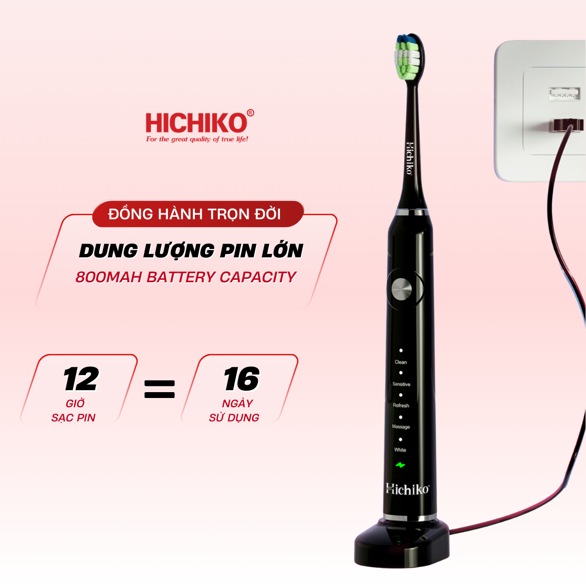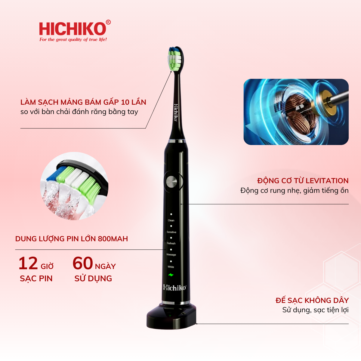 Bàn chải đánh răng điện Hichiko HC9801 5 chế độ, Công Nghệ Sóng Âm, Chải Sạch Mảng Bám Tới 10X (Màu Đen)