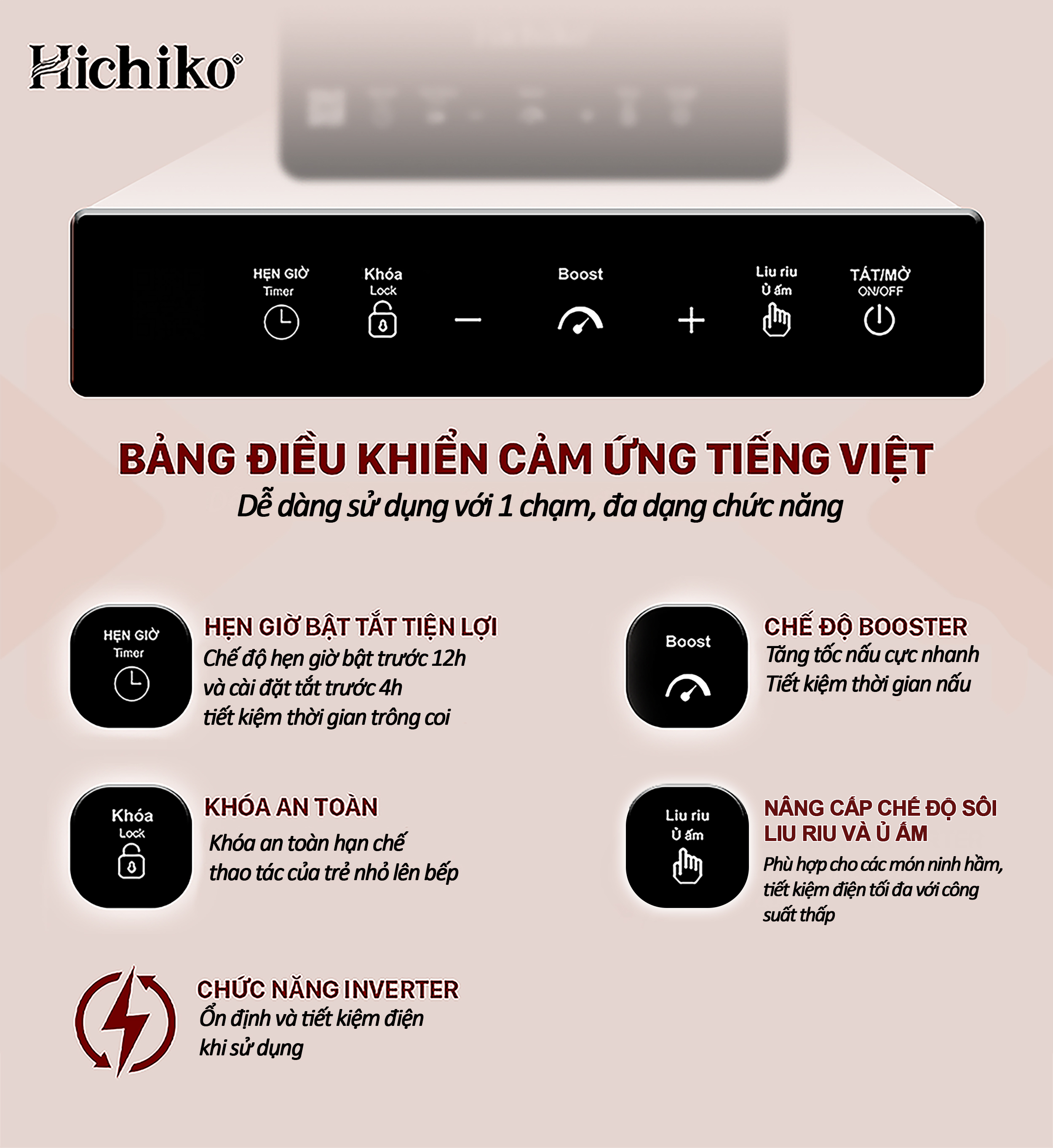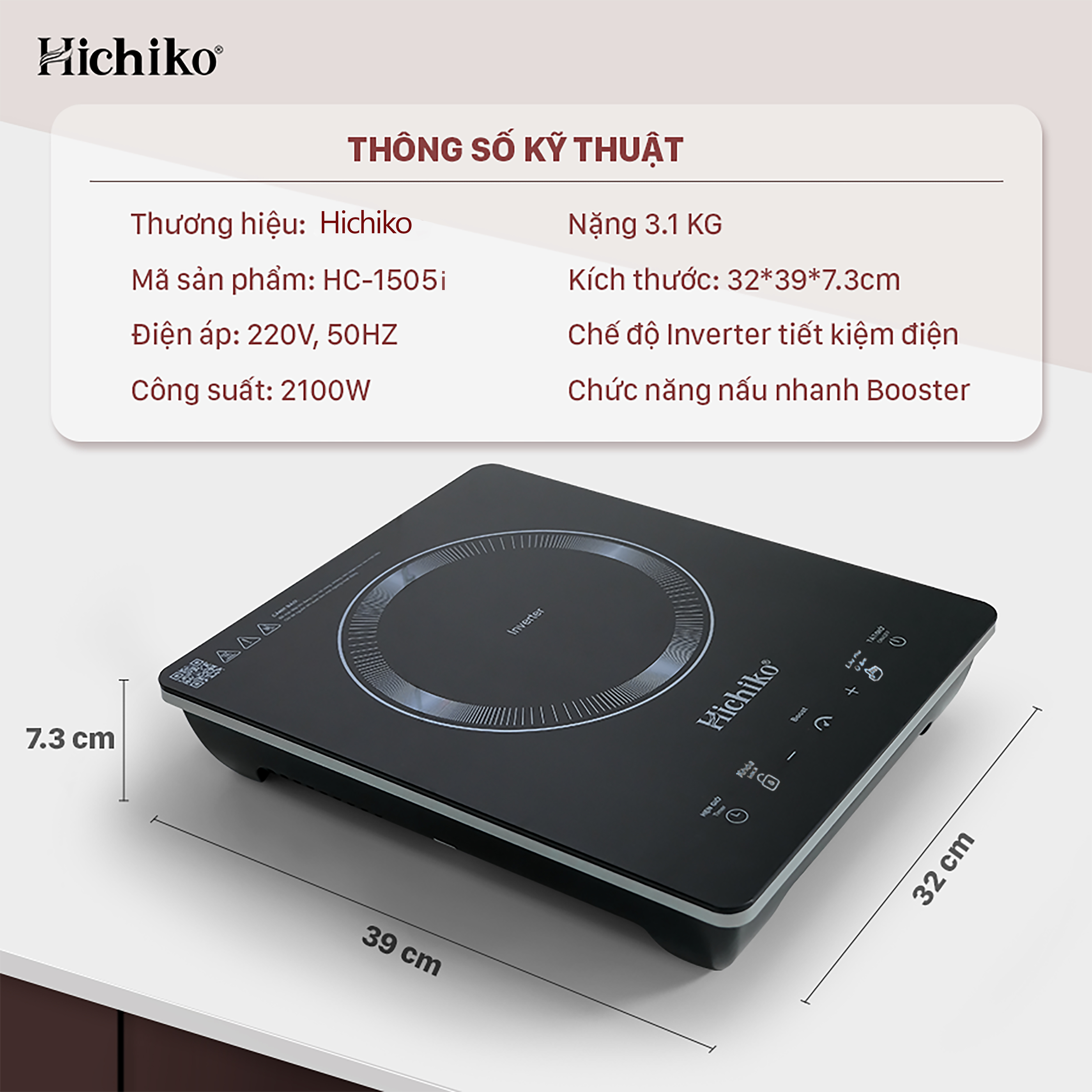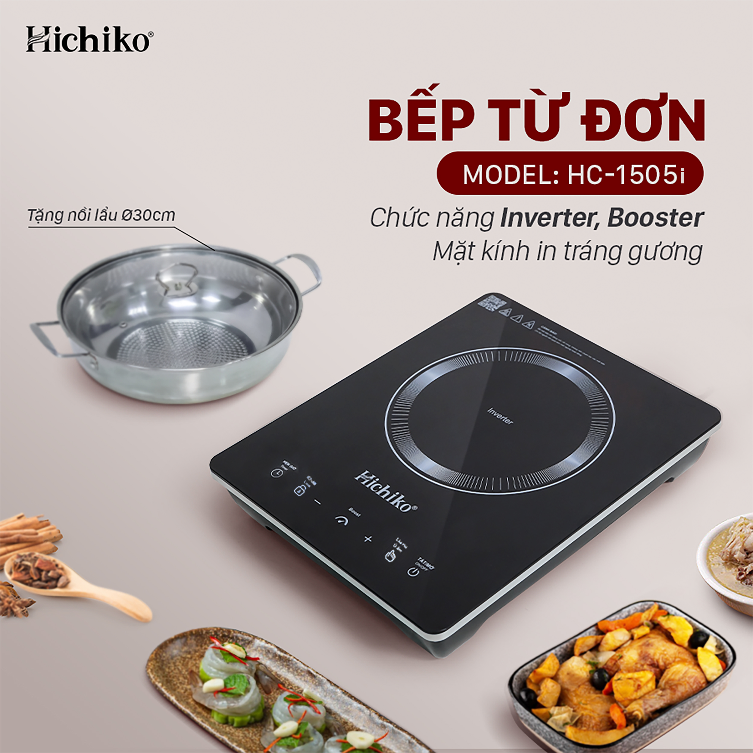 [Tặng nồi từ 30cm] Bếp từ đơn Hichiko HC-1505i, công suất 2100W, Inverter tiết kiệm điện
