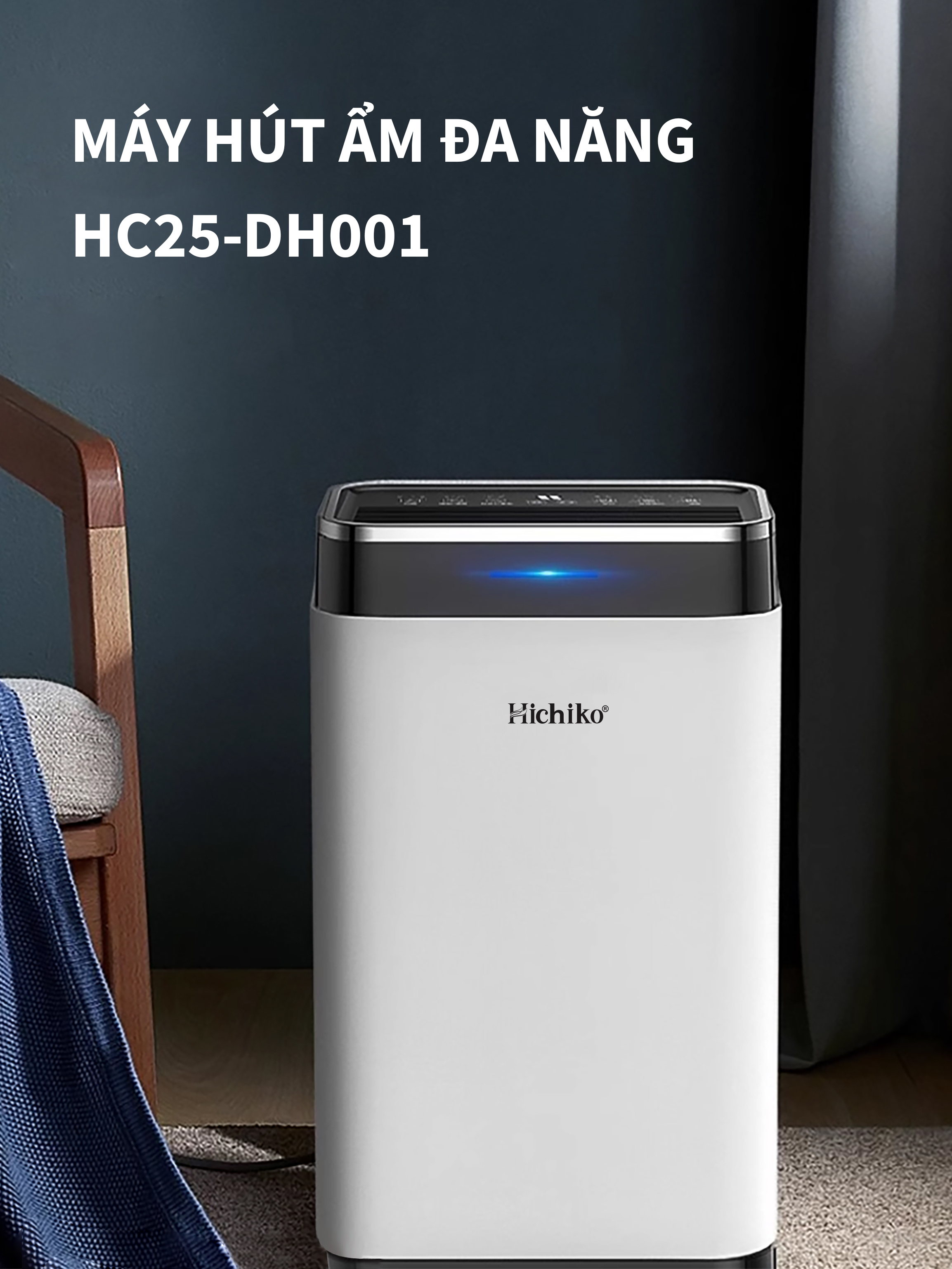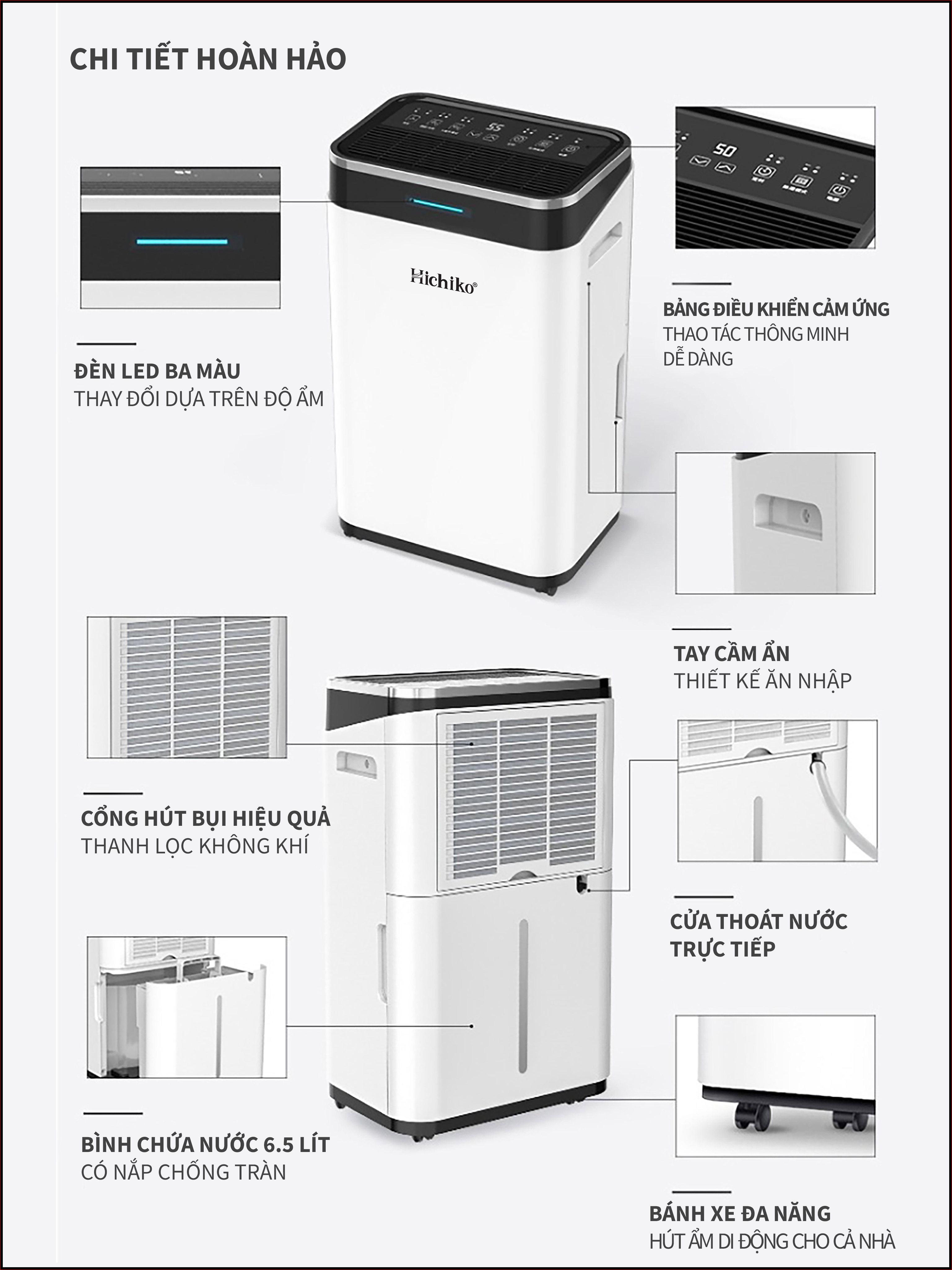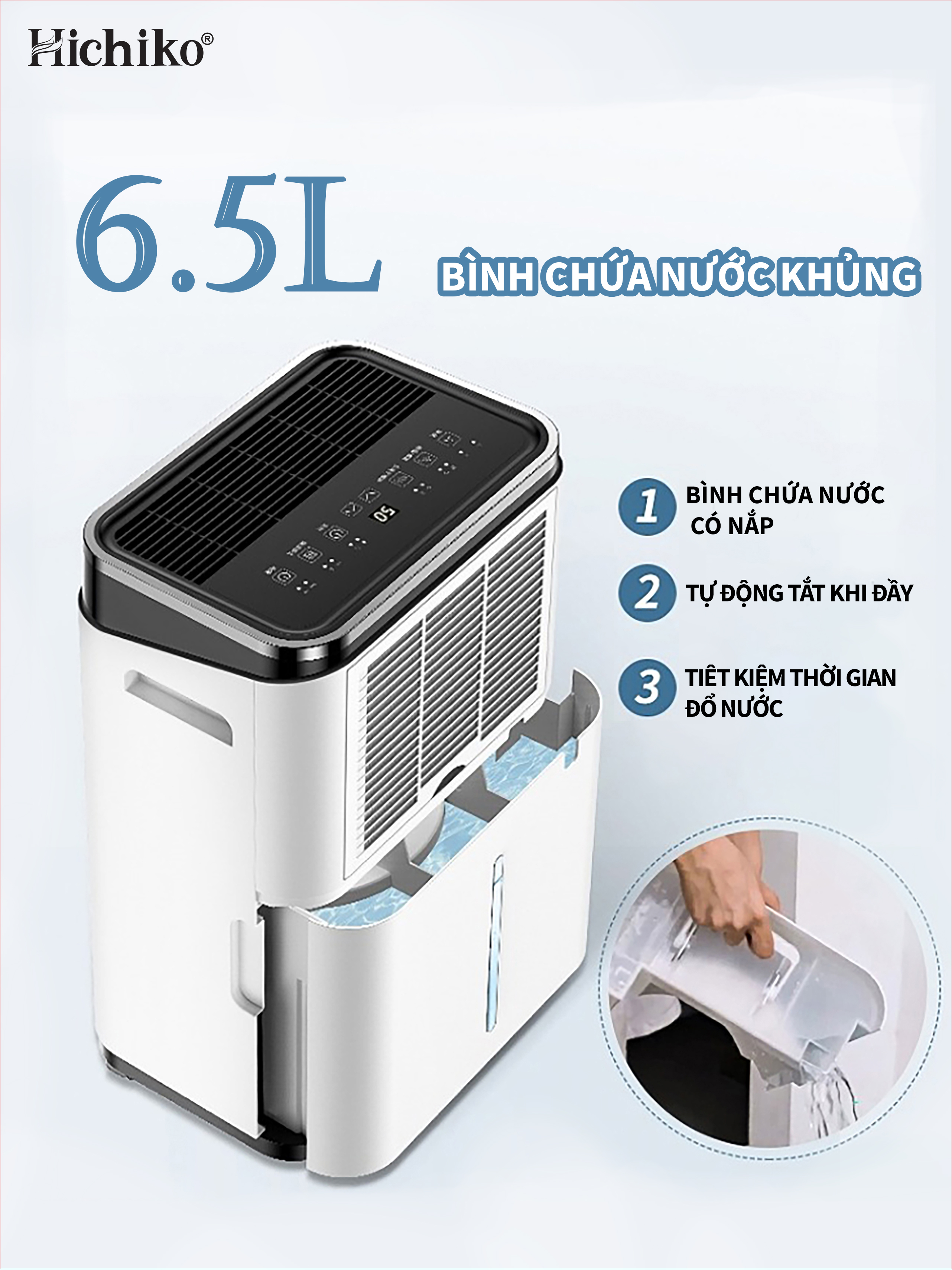 Máy hút ẩm Hichiko HC25-DH01, cho diện tích từ 30 - 60m2, công suất hút 25L/ngày, bình chứa 6.5L