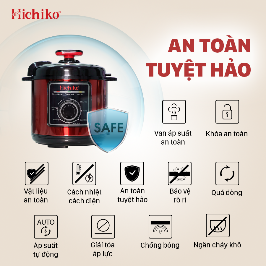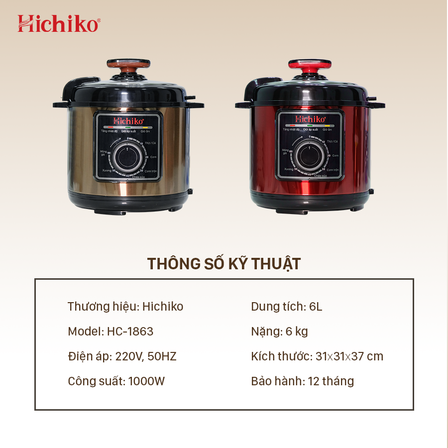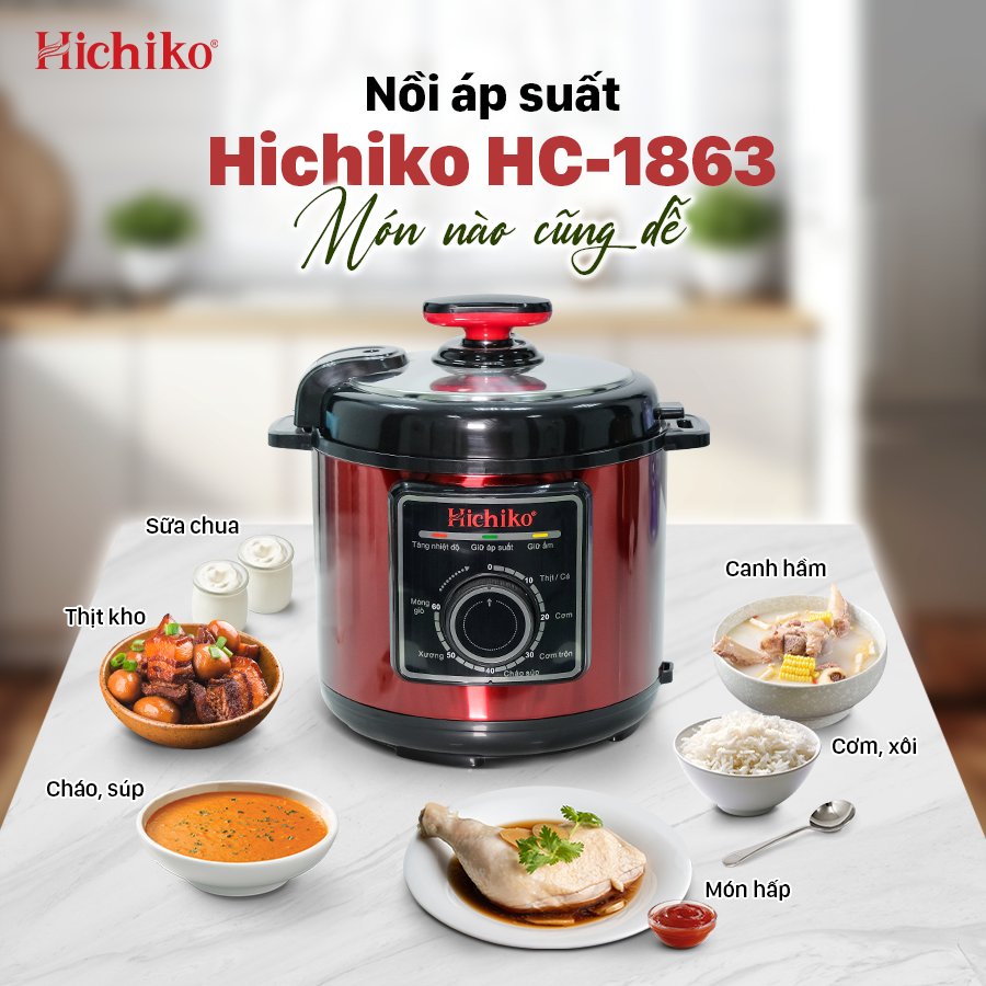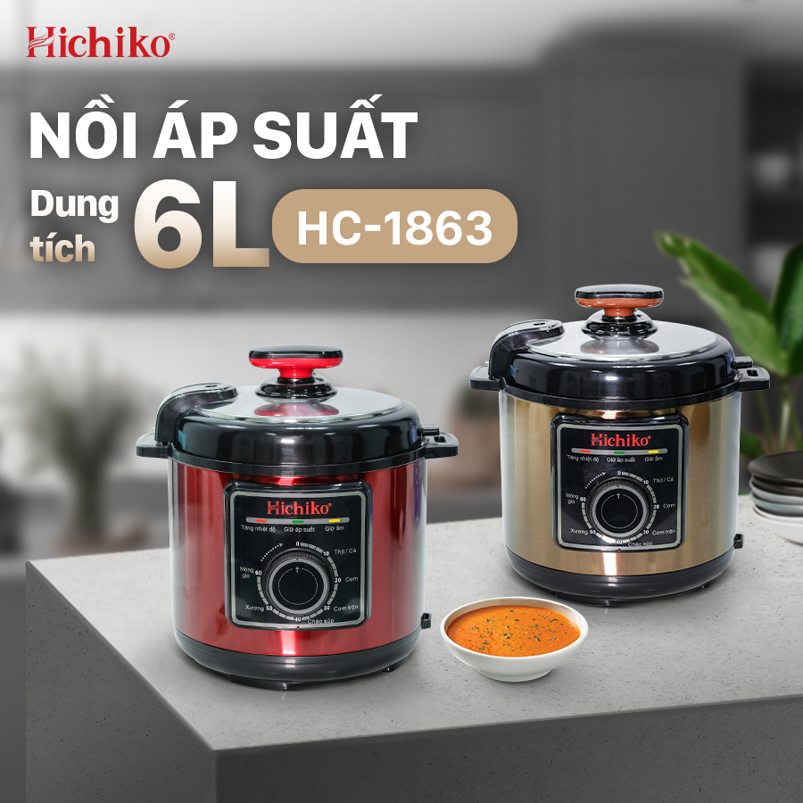 Nồi áp suất Hichiko 6L - HC 1863, siêu chống dính, van áp suất an toàn