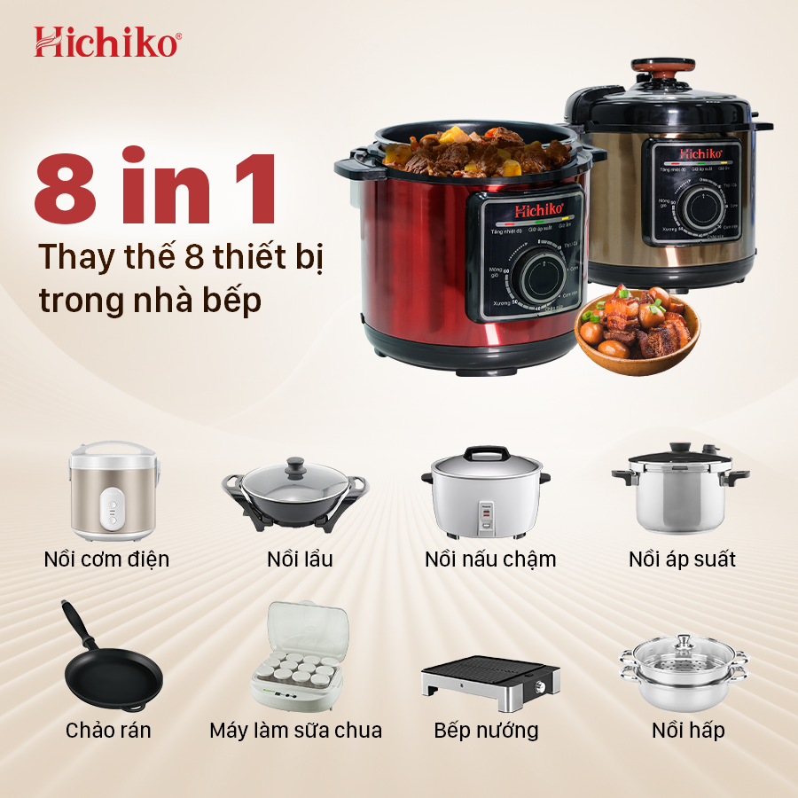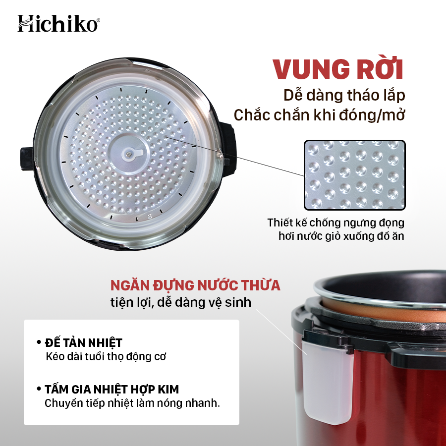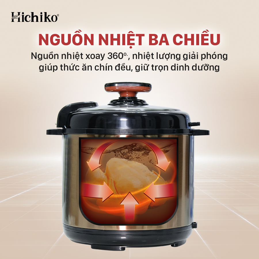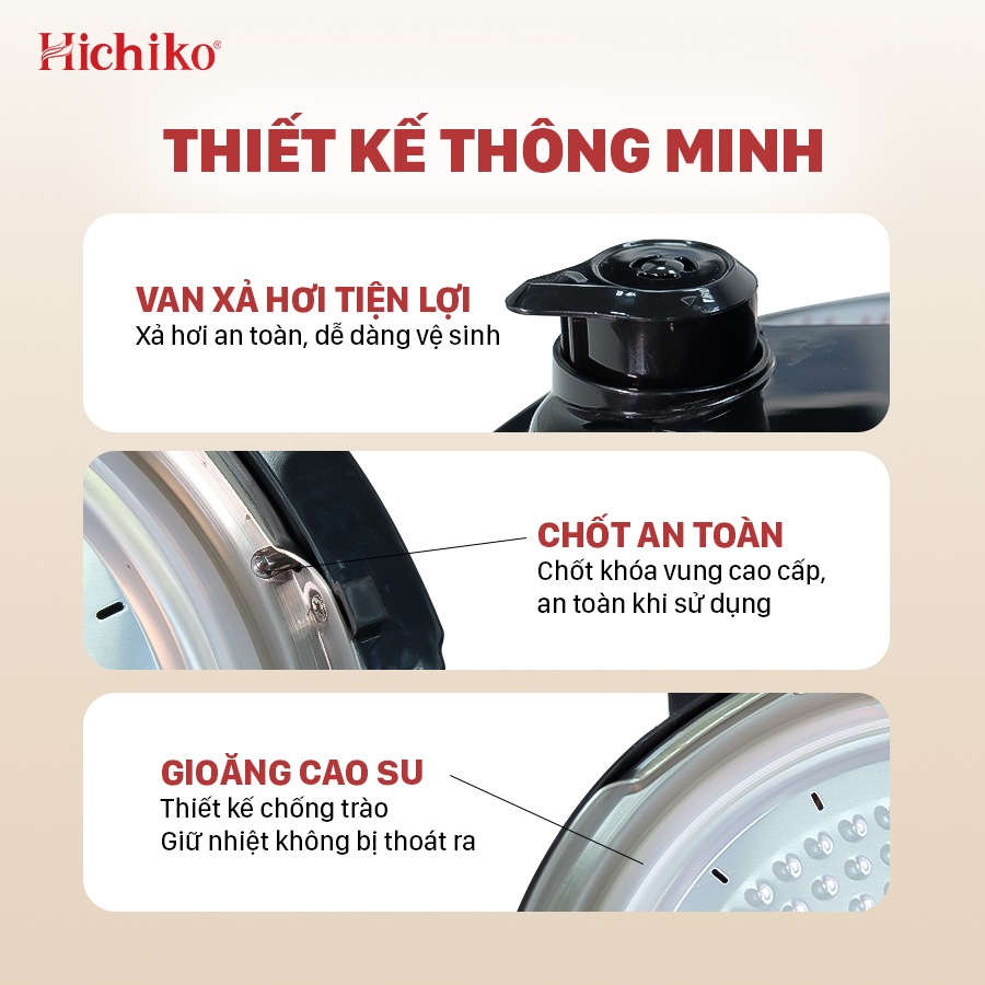 Nồi áp suất Hichiko 6L - HC 1863, siêu chống dính, van áp suất an toàn