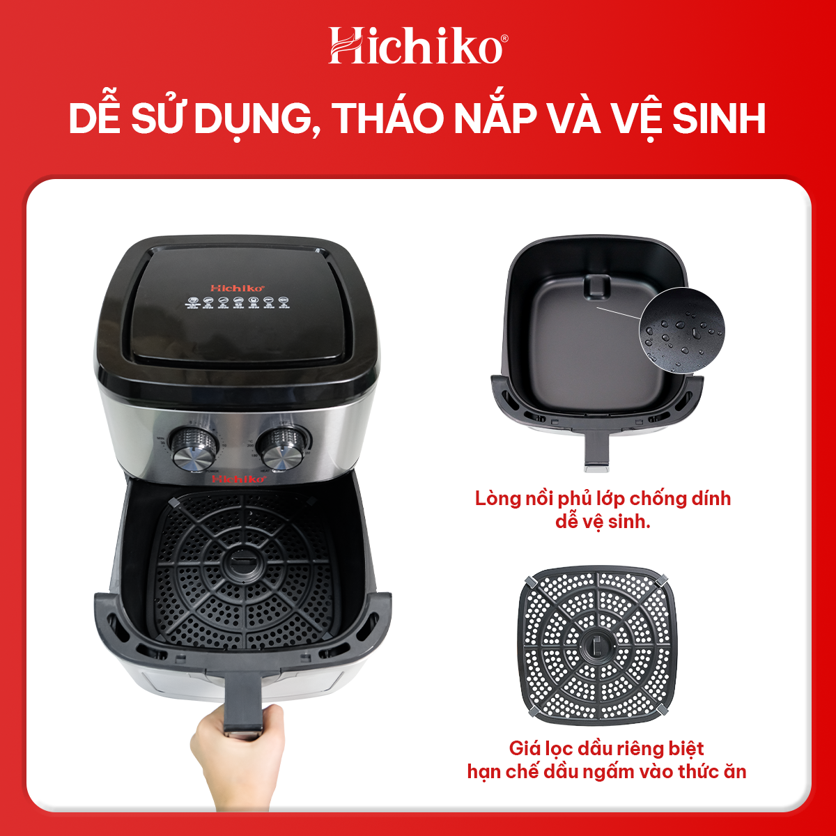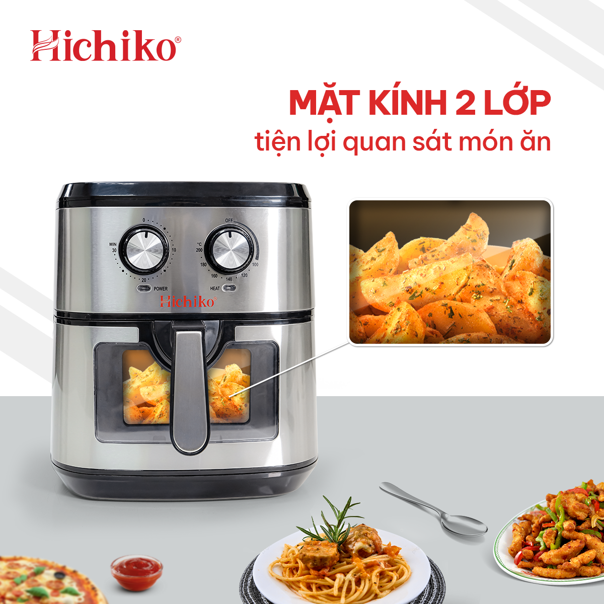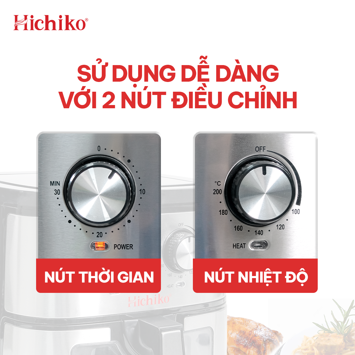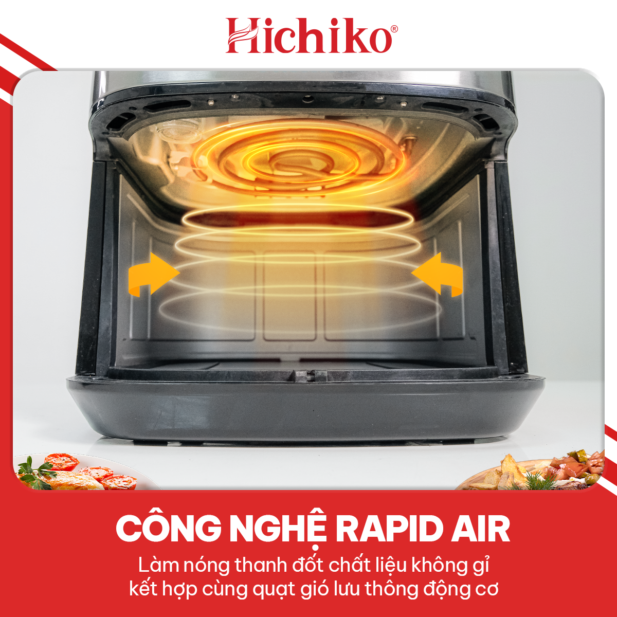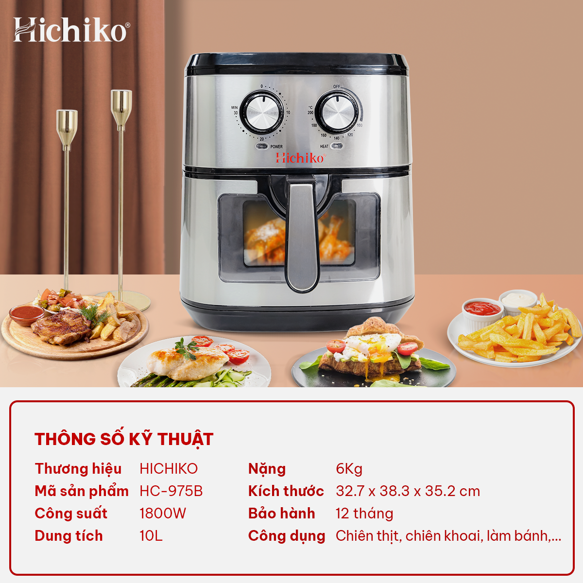 Nồi Chiên Không Dầu Hichiko 10L HC975B, nướng vừa con gà 3kg, công suất 1800W