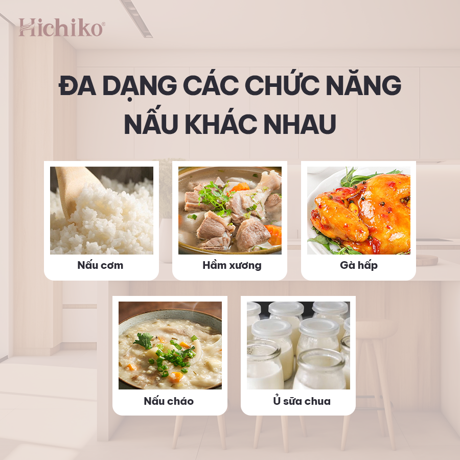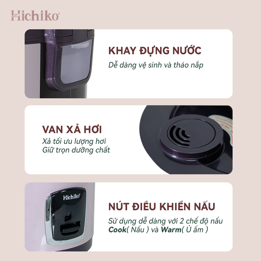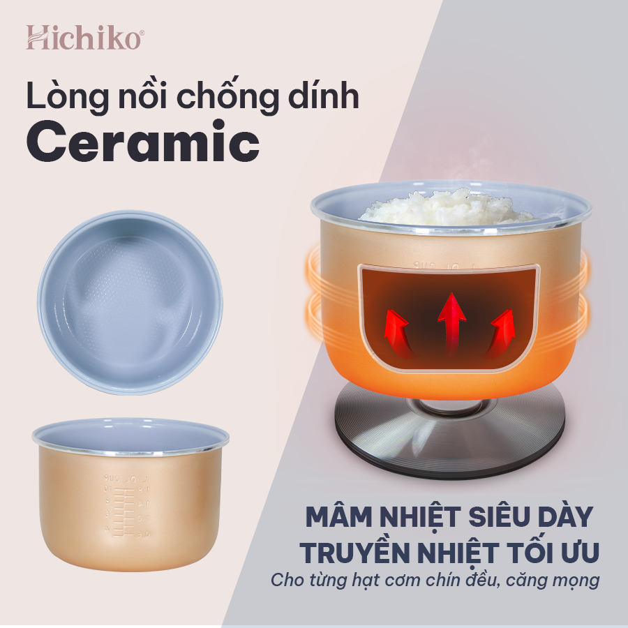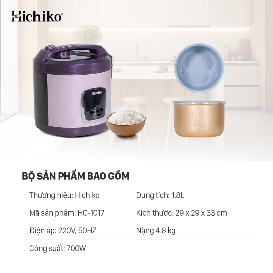 Nồi cơm điện 1.8L Hichiko HC - 1017, dành cho 6-10 người ăn, nồi siêu chống dính, mâm nhiệt dày dặn