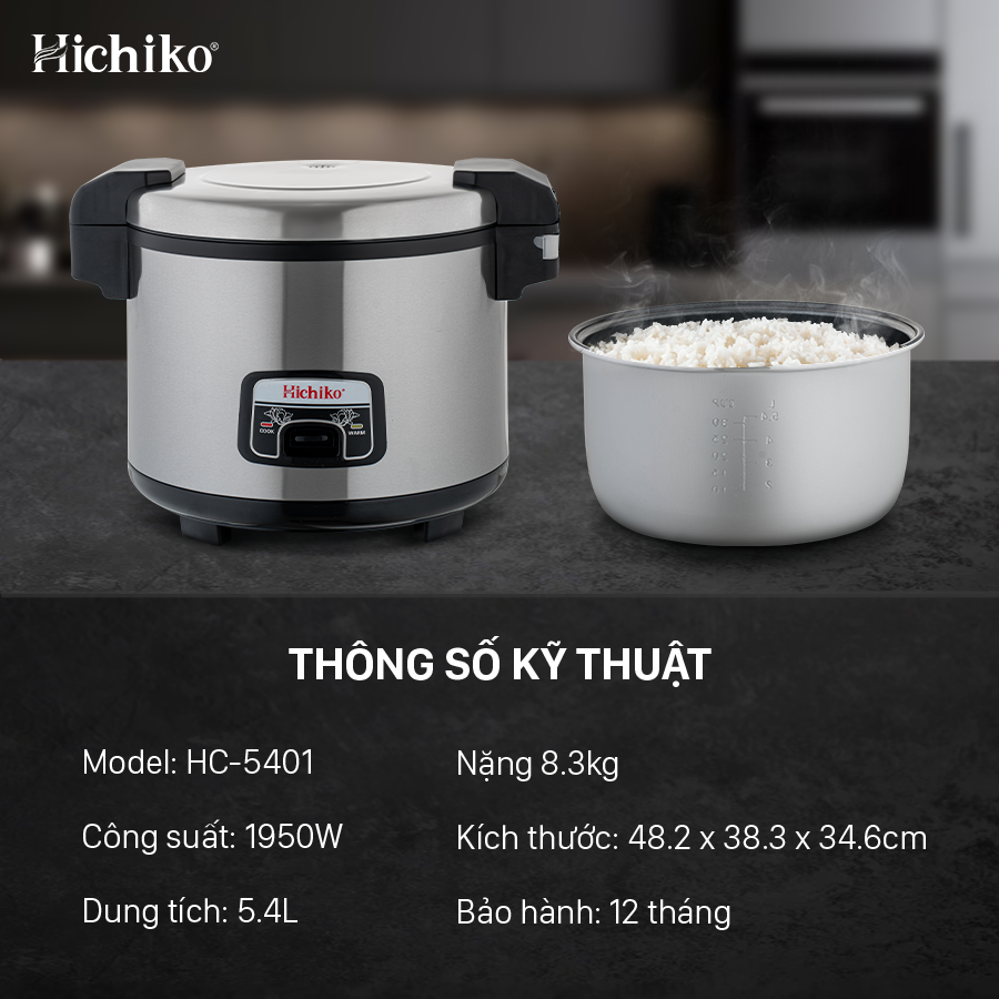 Nồi Nấu Cơm điện 5.4L Hichiko HC - 5401 cho công xưởng, Nấu Ăn dành cho từ 20 - 25 người ăn